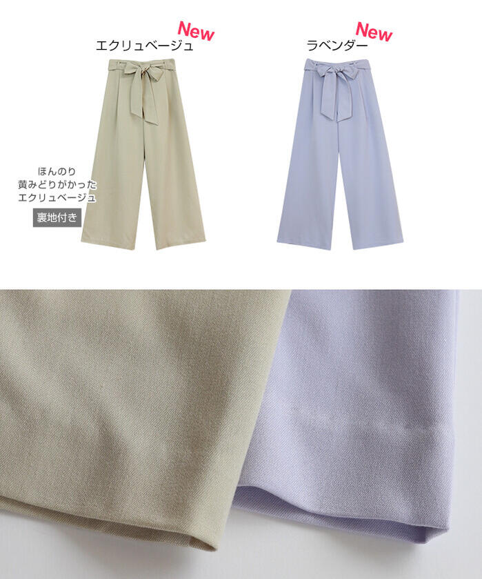 【送料無料】りぼんベルトロングワイドパンツ レディース ウエストゴム 2way オフィス カジュアル きれいめ 全10色 S・M・L